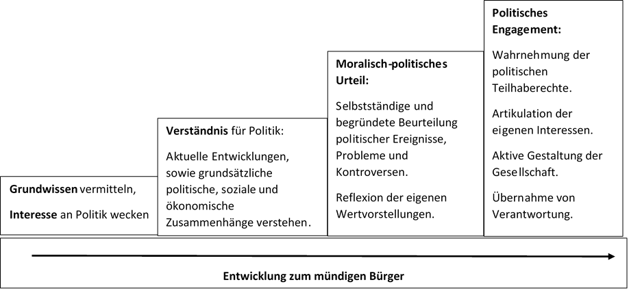 Durch aktuelle Einblicke wird das Interesse der Schülerinnen und Schülern für das politische Geschehen gefördert. Wesentliche Lerninhalte sind das Verstehen politischer Systeme der Gegenwart, die Bedeutung der Demokratie und die Notwendigkeit der Mitwirkung am politischen Leben etwa durch Wahlen auf kommunaler, Landes-, Bundes- und auf europäischer Ebene.