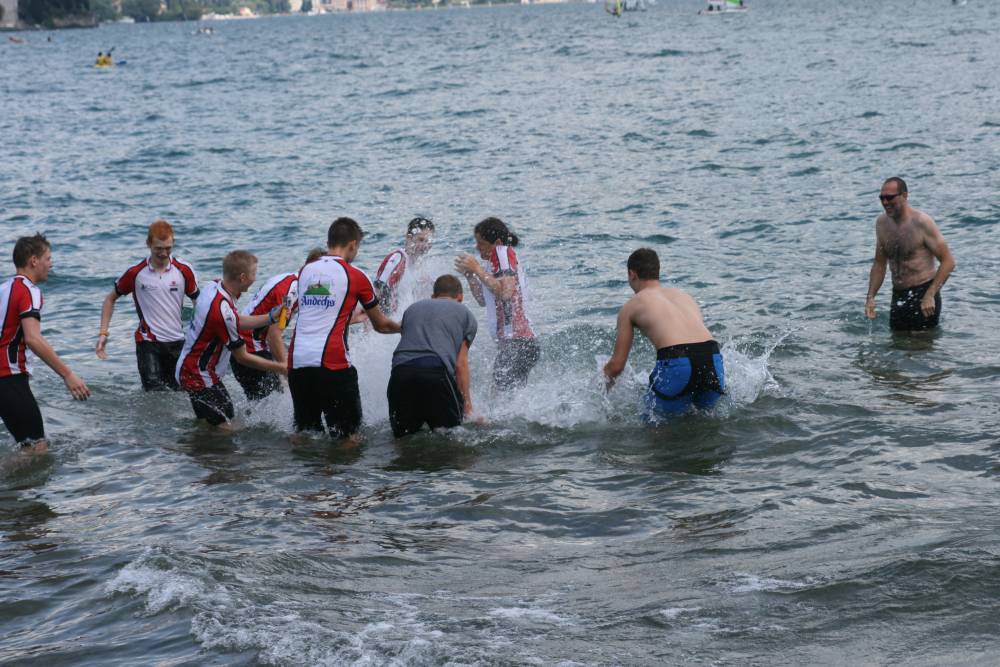 Verteilung der Sponsorenutensilien von MaibornWolff IT-Beratung und Andechs
