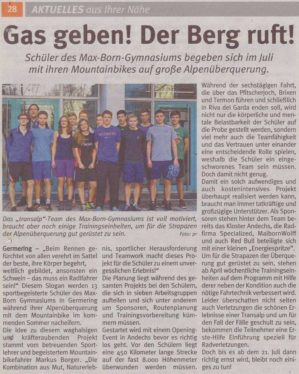 Vorbereitende Projekttage (drei Tage mountainbiken im Landkreis FFB und Starnberg)