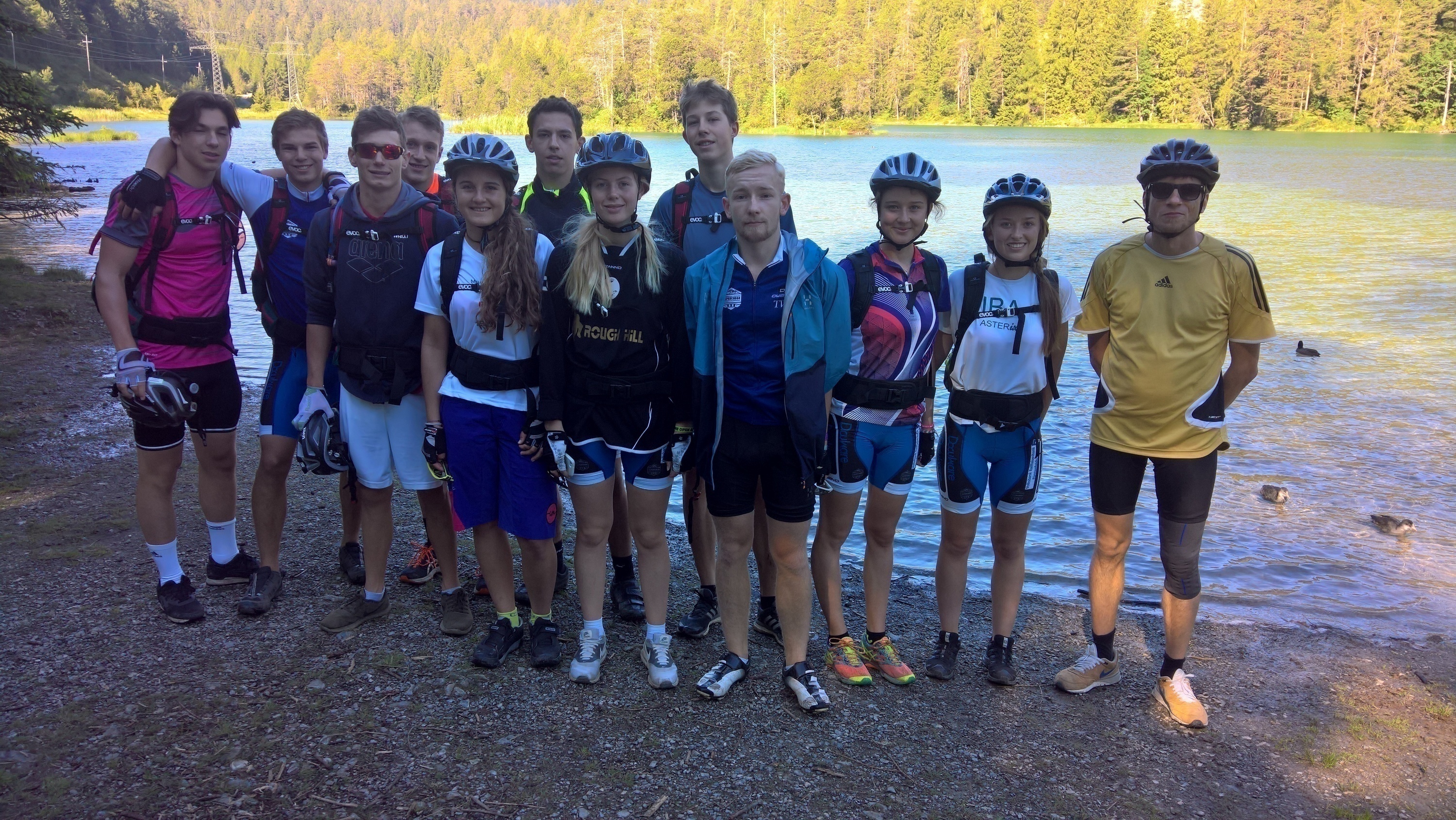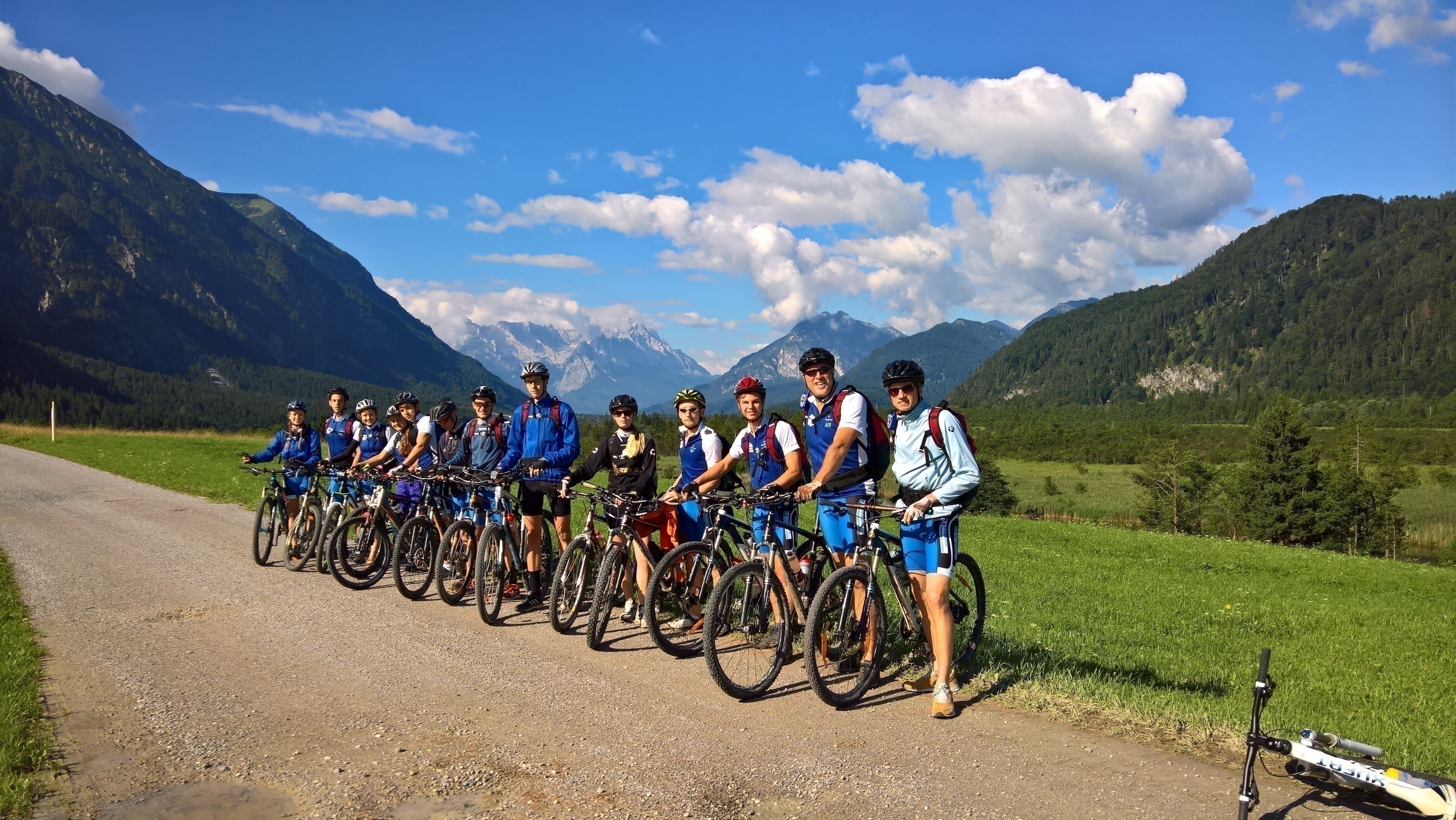 Startpunkt der heutigen Etappe war der Lerchenhof in Lermoos. Bereits um kurz vor sieben klingelten die Wecker der Truppe, um 7:45 Uhr pünktlich zum Frühstück erscheinen zu können. Planmäßige Abfahrt war um 8 Uhr, allerdings waren einige Sportler nicht pünktlich vor Ort, weshalb die morgige Etappe, auf Anweisung von Herr Borger, um 7:45 Uhr starten sollte. Als die Räder und restliche Ausrüstung auf Mängel gecheckt waren, konnte der zweite Tag der Alpenüberquerung kommen. Bereits am Vormittag galt es 1000 Höhenmeter zu bezwingen, bevor wir um 12:50 das wohlverdiente Mittagessen, wie immer sehr schön und gut hergerichtet durch Frau Jellen, erreichten. Nach 1,5 Stunden Pause auf einem Kinderspielplatz, brach die Gruppe zum zweiten Part der Tagesetappe auf. In der brennenden Mittagssonne, welche teilweiße schlimmer war als der Höhenunterschied von nochmals 700m ging es weiter Richtung Italien. Abgeschlossen wurde die Etappe mit einer sehr langen und ereignisreichen Abfahrt über Straßen und Trails ins Tal. Hierbei kam es zum ersten Umfaller der Tour, bei dem Mara bei der Ankunft im Stehen nicht mehr aus den Klick-Pedalen rauskam und umfiel :). An der Pension in Ried angekommen, waren alle froh den einzeln betrachtet härtesten Tag gemeistert zu haben. Am Abend ging das ganze Team zu einem Italiener im Dorf. Nun heißt es wieder Sachen für die morgige Etappe packen und frühzeitig schlafen gehen um mit neuer Energie in den nächsten Tag zu starten.