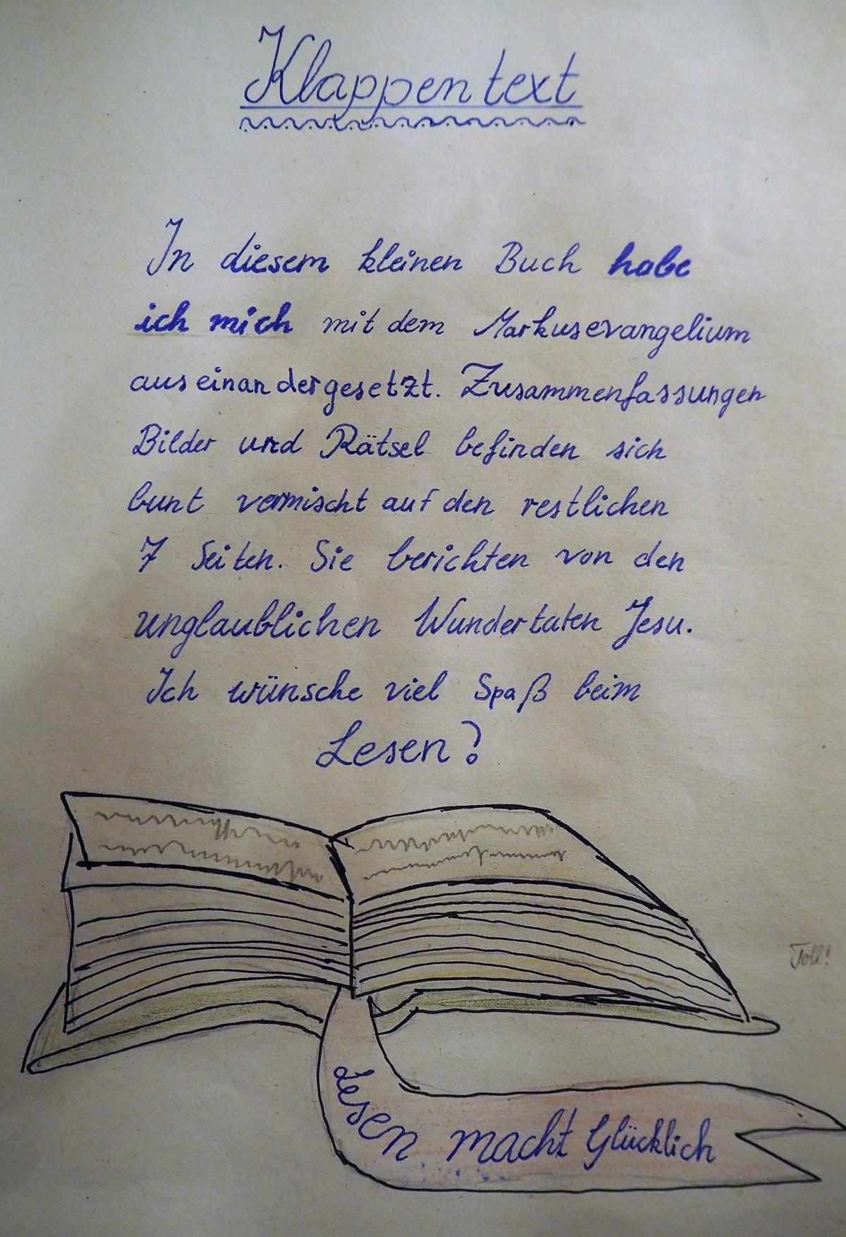 Parallel zur Lektüre des Markus-Evangeliums gestalten Schülerinnen und Schüler der 7. Klasse ein Lesetagebuch, bei dem die Kreativität der Schüler zum Vorschein kommt.