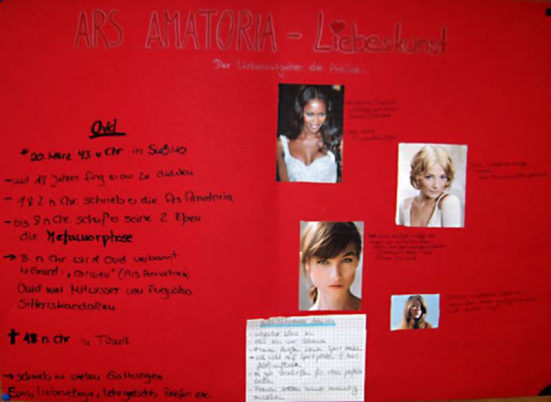 Gruppe 1 stellte Gemeinsamkeiten zwischen heutigen Schönheitsidealen und denen in Ovids Ars amatoria fest (Bild 1), hielt aber nicht ganz jugendfreie Tipps zum Liebesleben taktvoll hinter Verschluss (Bild 2 ).