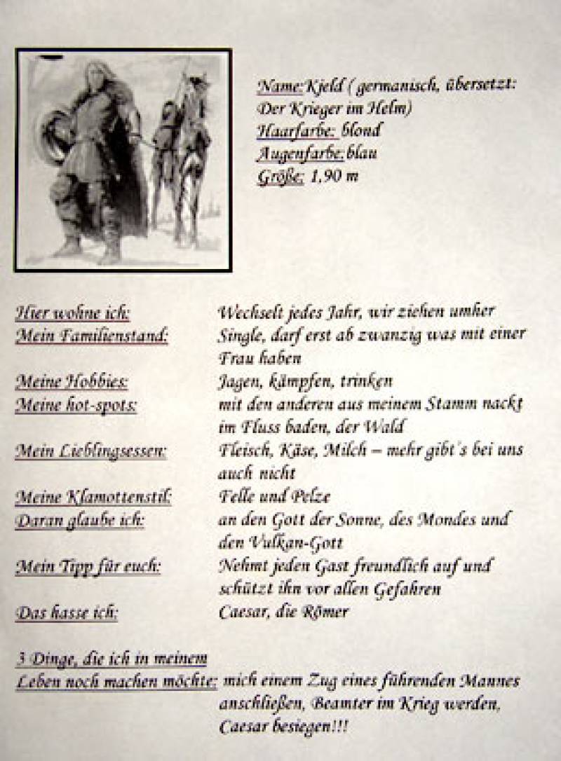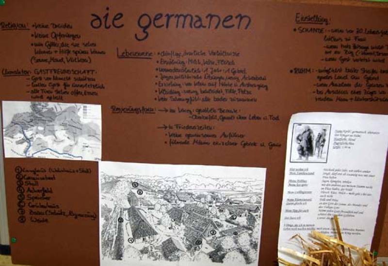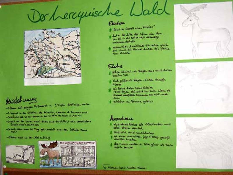 Gruppe 2 las Caesars Bericht über die Germanen, Land und Leute, und amüsierte sich über sein unglaubliches "Jägerlatein" zur dortigen Tierwelt. (Bild 3-9)
