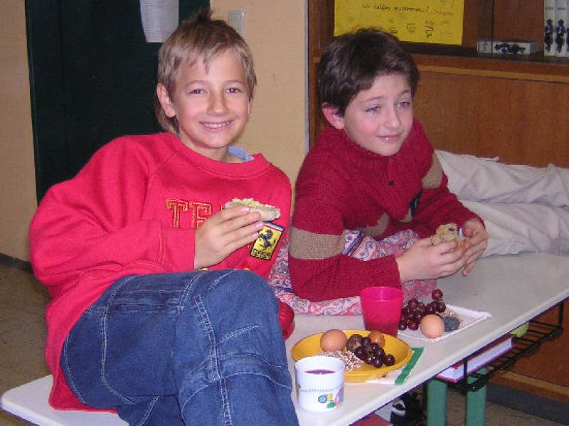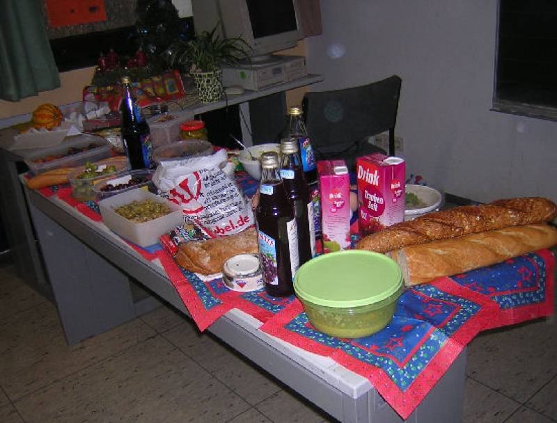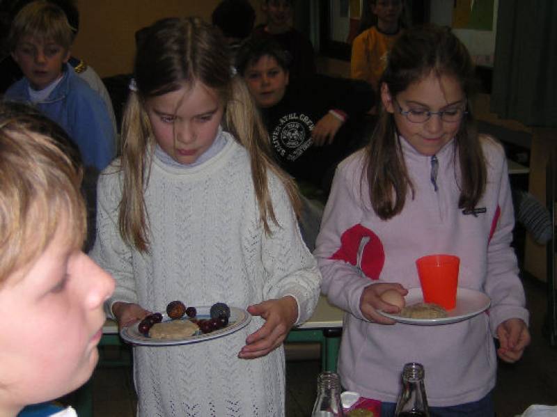 Mit (nach Originalrezepten!) selbst zubereiteten Speisen und einem improvisierten Triclinium (Speisezimmer) im Klassenzimmer konnte die „Zeitreise“ also beginnen....