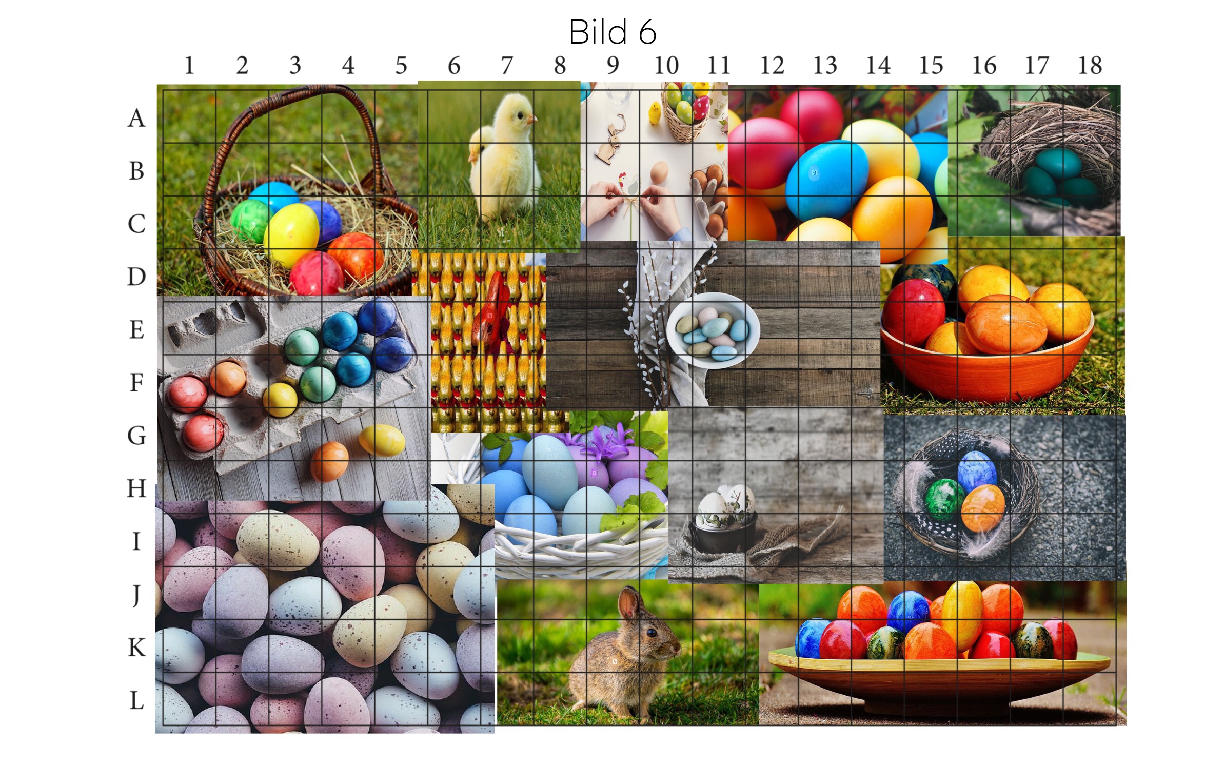 In diesen 16 Bildern suchst du die Born-Eier (Tipp: Diese können auch andere Farben haben und unterschiedliche Größen. Es sind immer zwischen 5 und 8 Eier versteckt.) Manche sind ganz leicht zu finden, andere sind sehr gut versteckt.